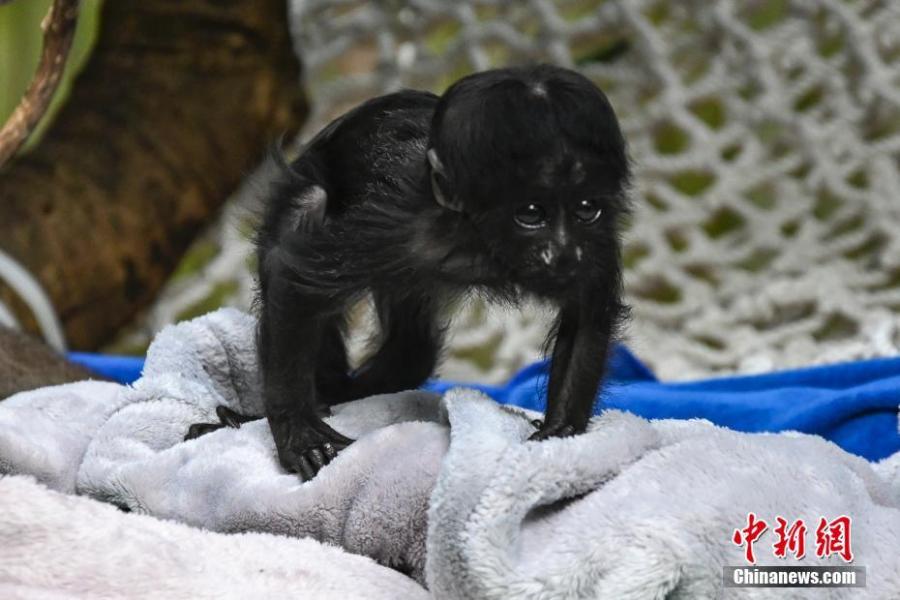 Black bearded saki cub makes debut in Chimelong Safari Park