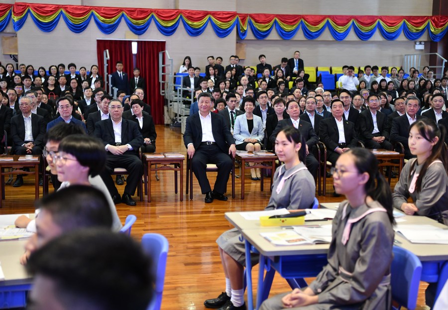 "Patriotic education lays a solid social and political foundation for Macao to implement the principle of 'one country, two systems' and guides its practice to always proceed in the correct direction," Xi told students and teachers.