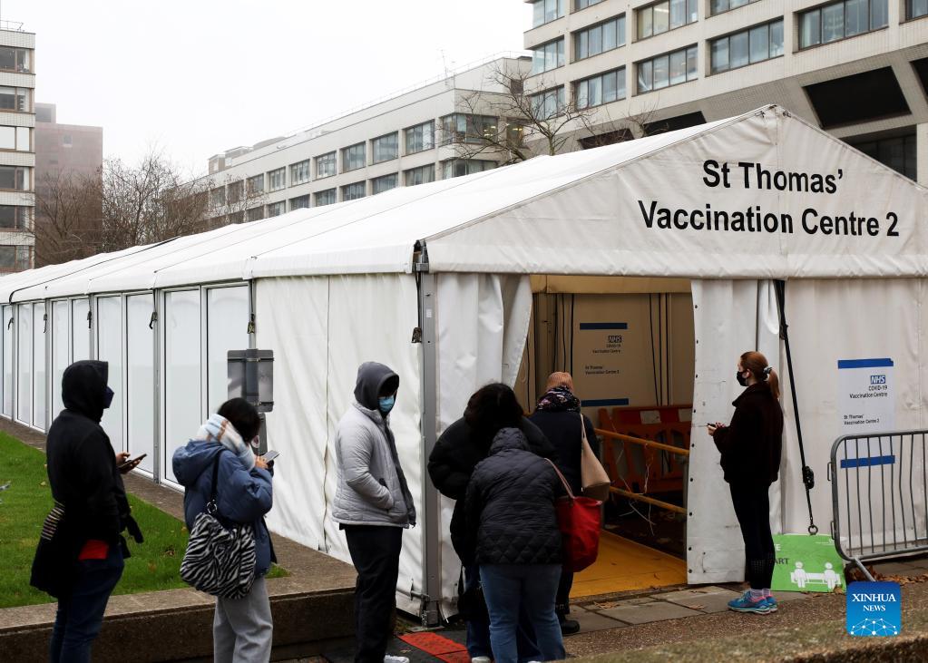 People line up outside a COVID-19 vaccination center in London, Britain, Dec. 19, 2021. (Xinhua/Li Ying)