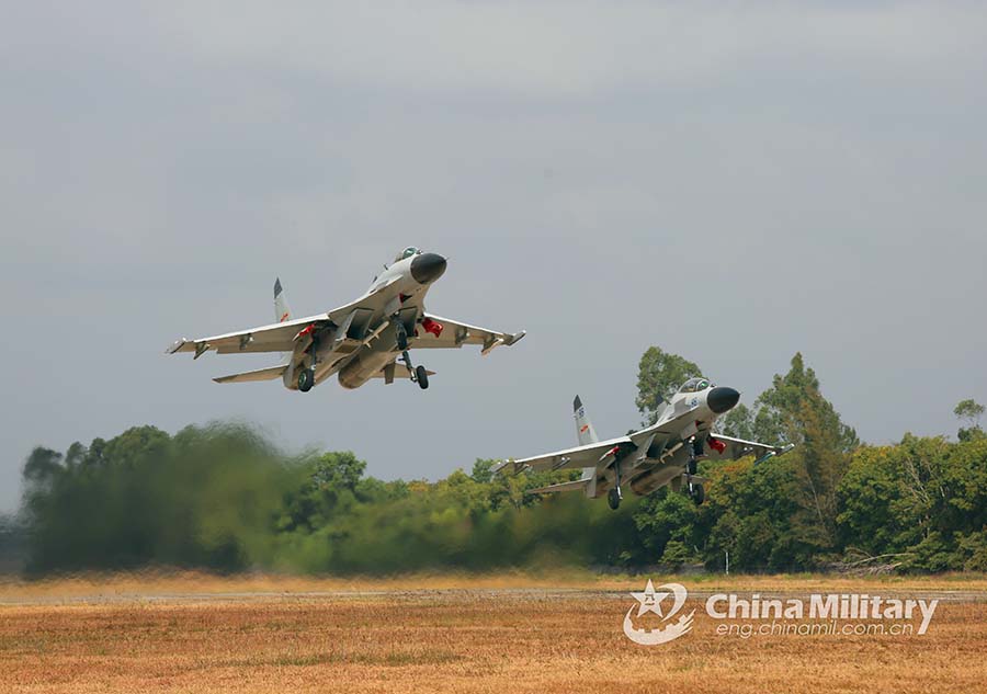 Fighter jets attached to a naval aviation brigade under the PLA Southern Theater Command take off during a flight training exercise on December 9, 2021. (eng.chinamil.com.cn/Photo by Deng Zeming)