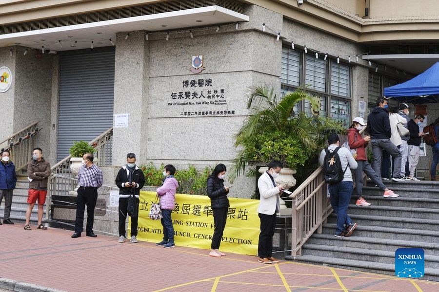 Voters wait to cast ballot at a polling station in Whampoa, south China's Hong Kong, Dec. 19, 2021.(Xinhua/Wang Shen)