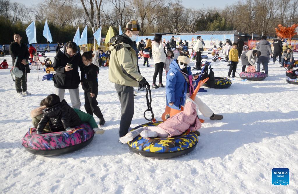 An ice and snow festival was held in the World Park in Beijing, capital of China, Dec. 19, 2021. A large number of Beijing citizens attended the event in the park. The event featured carnival-like activities to celebrate the upcoming Winter Olympics in Beijing. Participants could experience more than 20 different winter sports or activities. Ice and snow themed performances were also featured. (Xinhua/Li Xin)