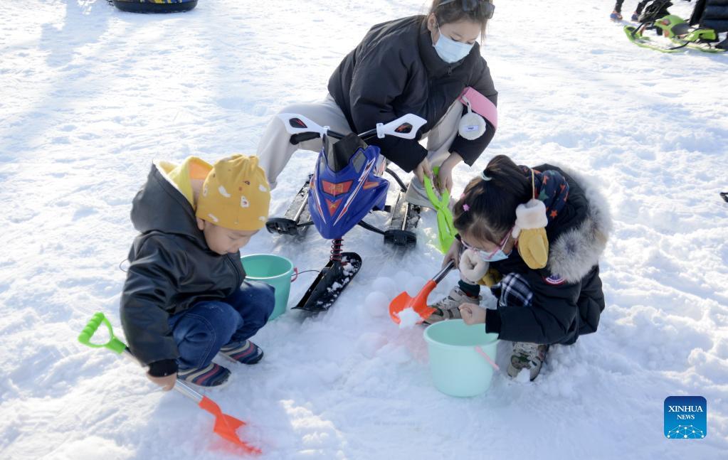 An ice and snow festival was held in the World Park in Beijing, capital of China, Dec. 19, 2021. A large number of Beijing citizens attended the event in the park. The event featured carnival-like activities to celebrate the upcoming Winter Olympics in Beijing. Participants could experience more than 20 different winter sports or activities. Ice and snow themed performances were also featured. (Xinhua/Li Xin)
