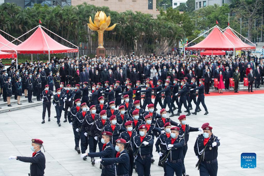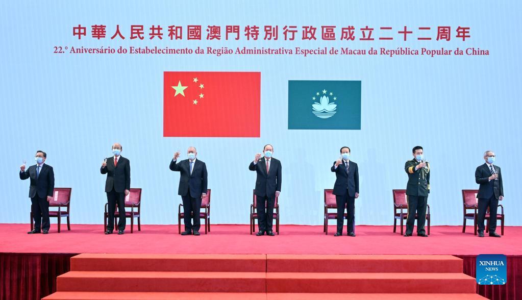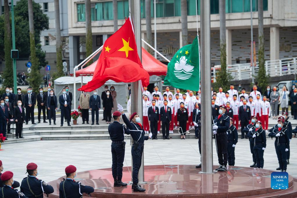 MACAO, Dec. 20 (Xinhua) -- China's Macao Special Administrative Region (SAR) on Monday held a flag-raising ceremony and a reception to mark the 22nd anniversary of Macao's return to the motherland and the establishment of the Macao SAR.