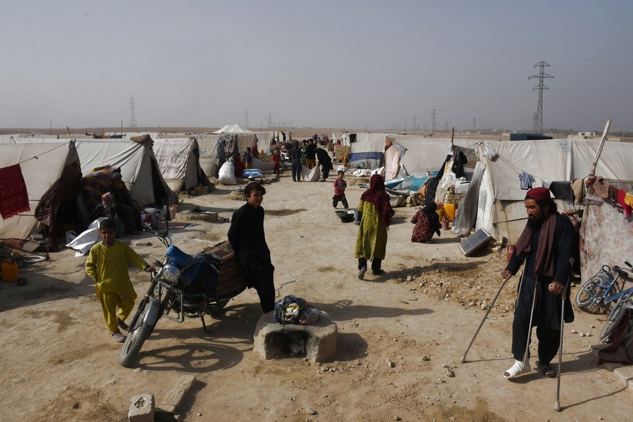 Photo taken on Oct. 23, 2021 shows a displaced persons camp in Mazar-i-Sharif, capital of Balkh province, Afghanistan. (Photo by Kawa Basharat/Xinhua)