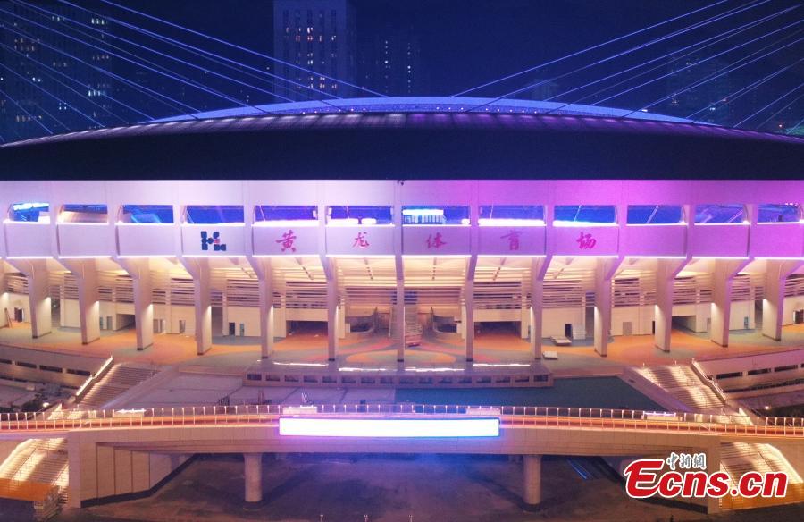 The lighting effect of the 2022 Asian Games theme is displayed at the Huanglong Sports Centre Stadium in Hangzhou, east China's Zhejiang Province, Dec. 20, 2021. (Photo: China News Service/Wang Gang)