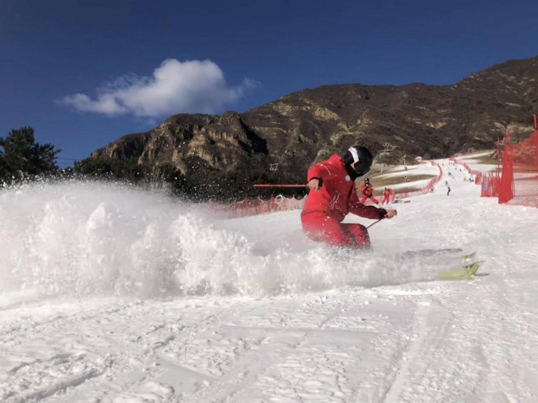 In the snow-covered Haituo Mountain in Yanqing district, Beijing, a team of skiers in red winter coats weaved from side to side between flags in an S-shaped trajectory. They are members of Haituo Farmers’ Skiing Team, a well-known farmers’ skiing team in Yanqing district.