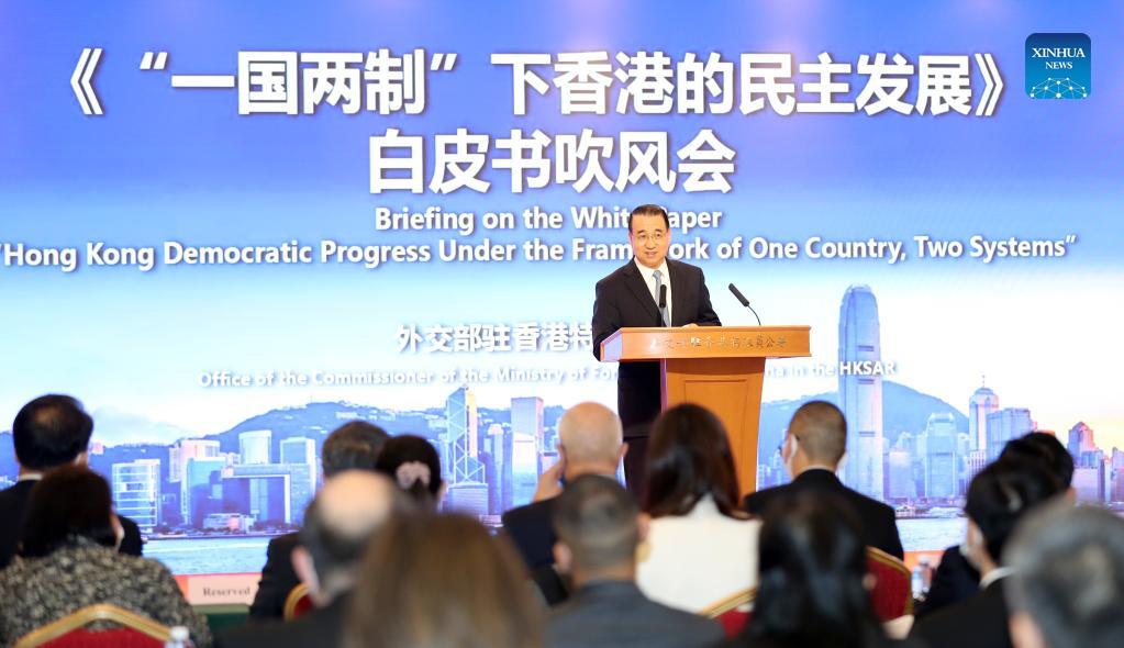 Citing the white paper titled "Hong Kong: Democratic Progress Under the Framework of One Country, Two Systems" released by China's State Council Information Office on Monday, Liu Guangyuan, commissioner of the Chinese foreign ministry in the HKSAR, told the briefing that under the British colonial rule, there was no democracy in Hong Kong and the return of Hong Kong to China ushered in a new era for its democracy.