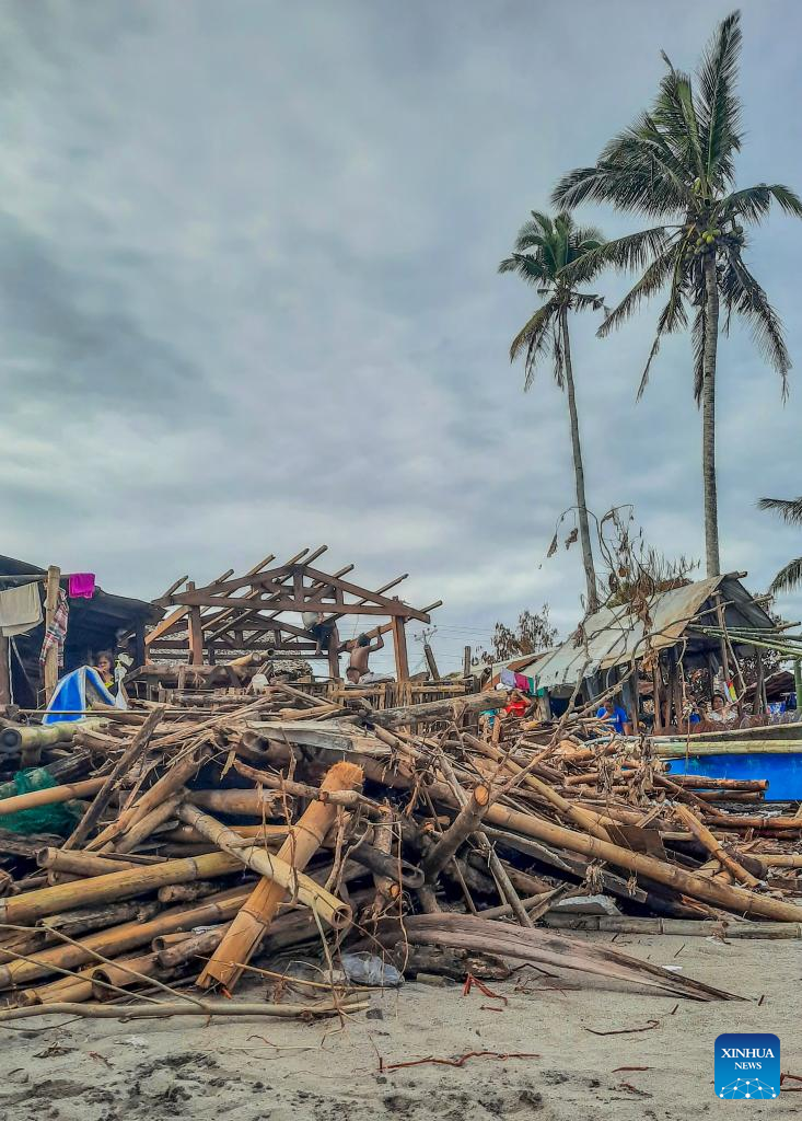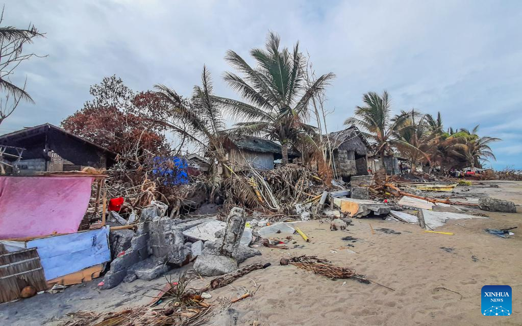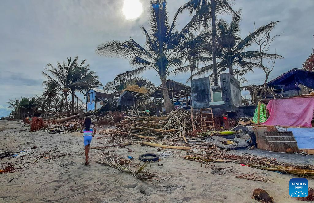 Photo shows a fishing community damaged by Typhoon Rai along a shoreline in Leyte Province, the Philippines, Dec. 22, 2021.