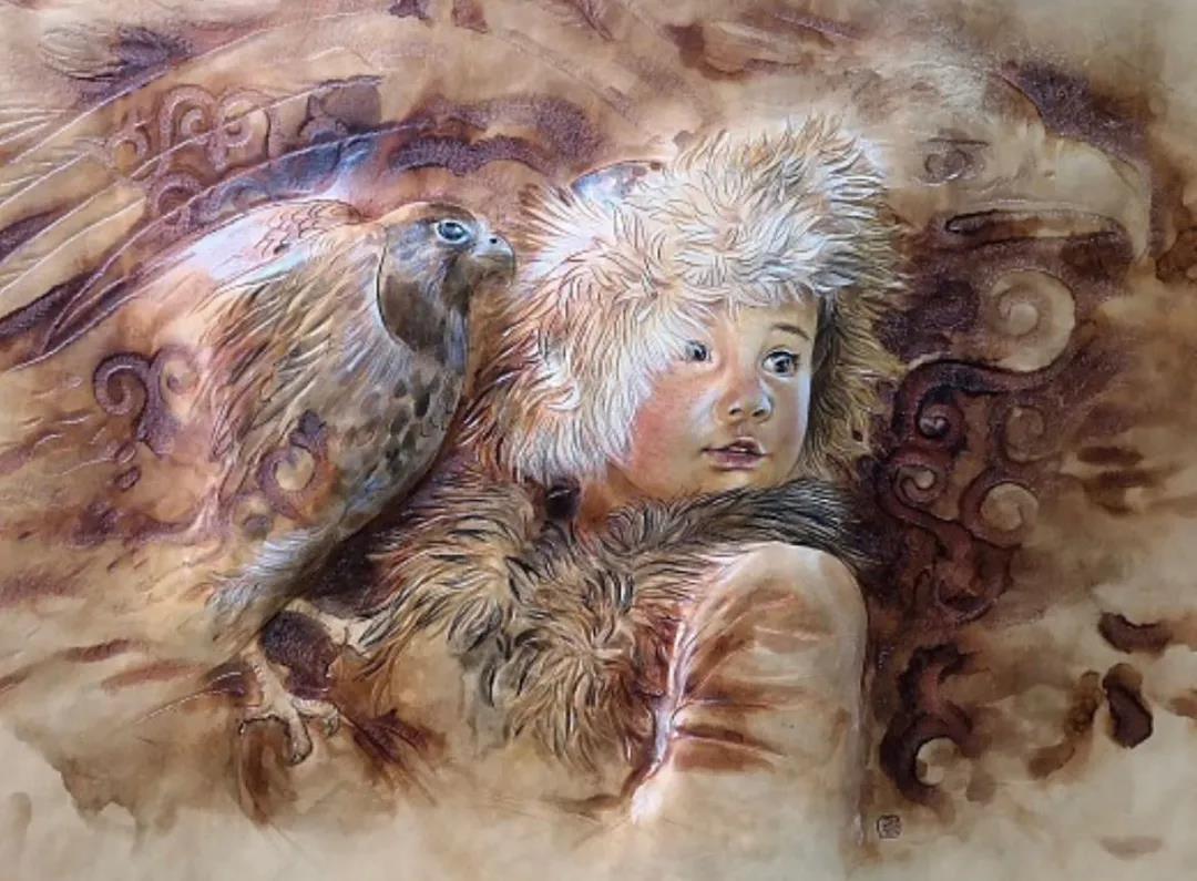 Meng expended the most of her energies on a work called “mother.” It is a figure-painting carved on a piece of red cattle hide, and tells the story of young girls of the Tajik ethnic group learning embroidery from their mothers, and passing down the art to their offspring. The work won an award in a national trade fair for handiworks in 2020.