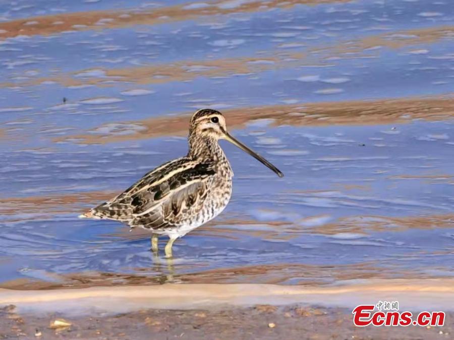 Photo shows the fantail snipe in Zhangxian County, Dingxi City, northwest China's Gansu Province. (Photo: China News Service/Ma Tianyun)