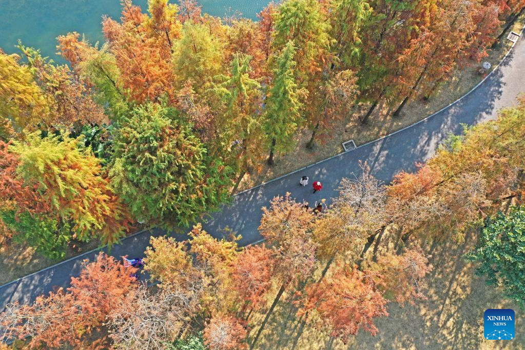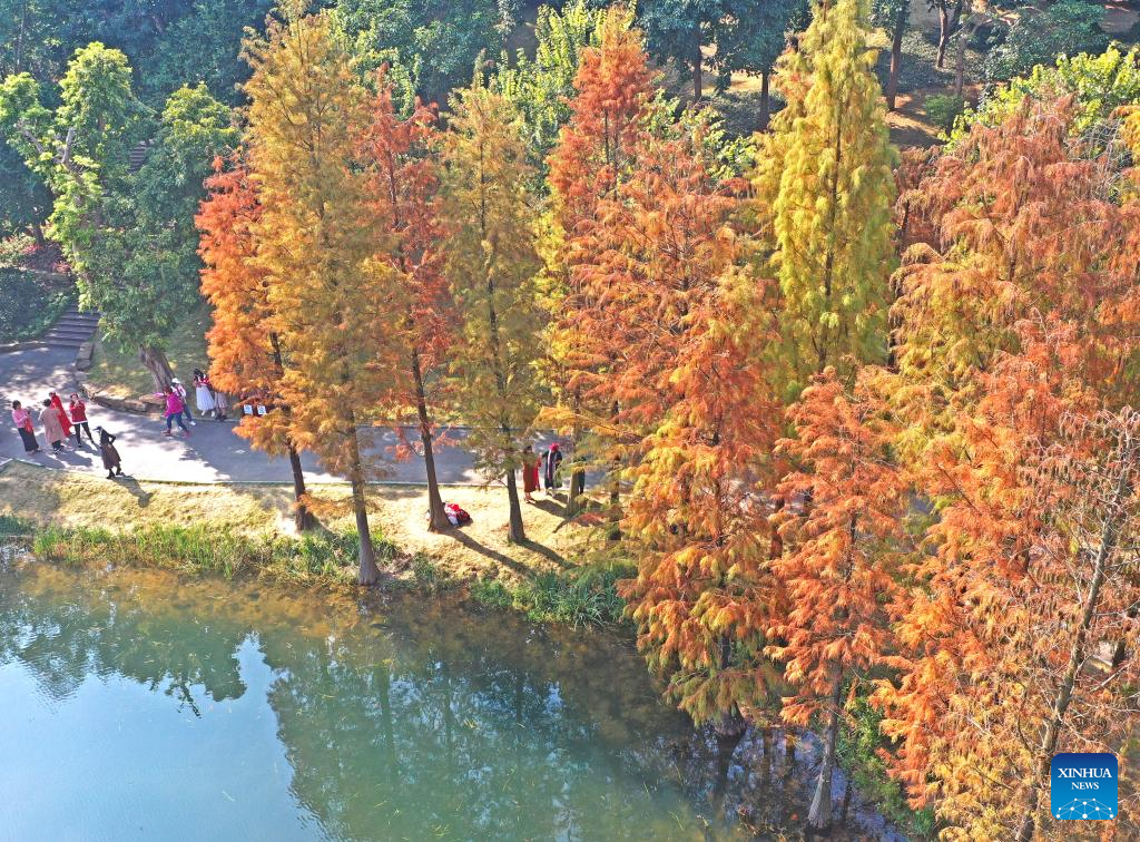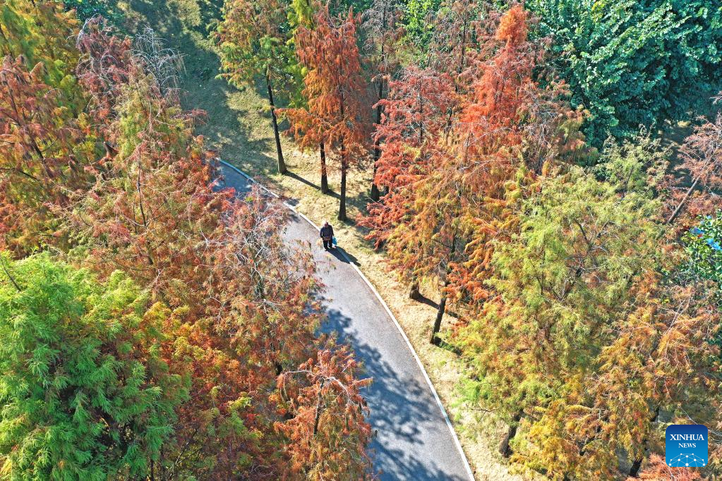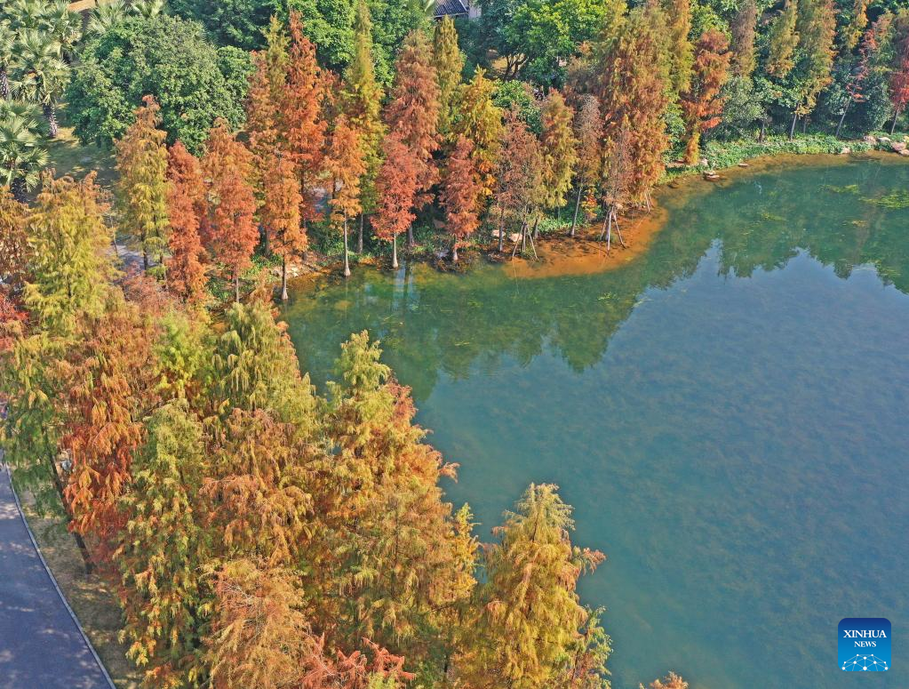 Aerial photo shows cedar trees in Qingxiu Mountain scenic area in Nanning, south China's Guangxi Zhuang Autonomous Region, Dec. 23, 2021. (Xinhua/Zhou Hua)