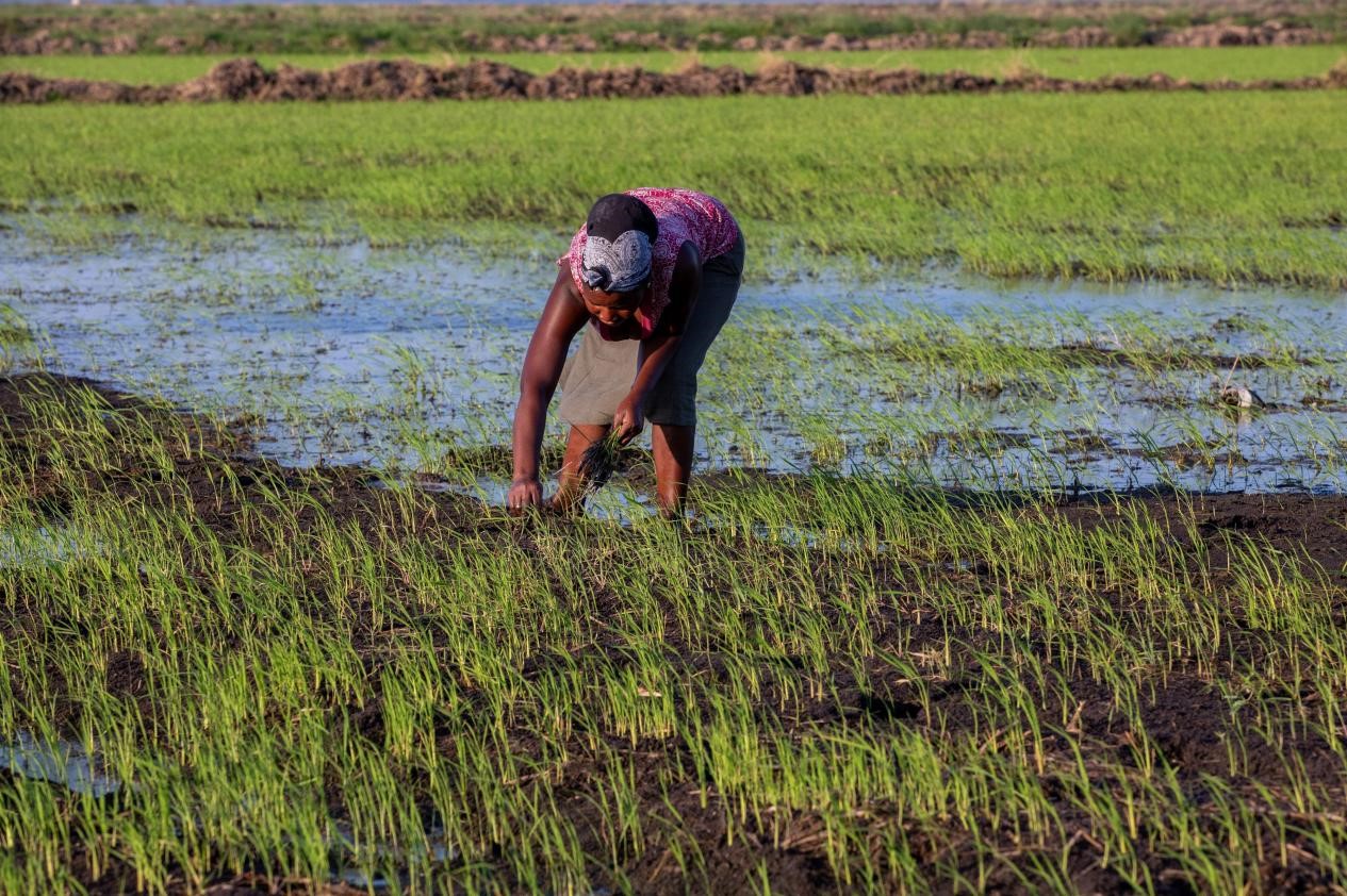 A farmer works in a field of the China-Africa Xai-Xai Agricultural Cooperation Project in Xai-Xai city of Mozambique’s Gaza province, November 2019. (Photo/www.crnews.net)