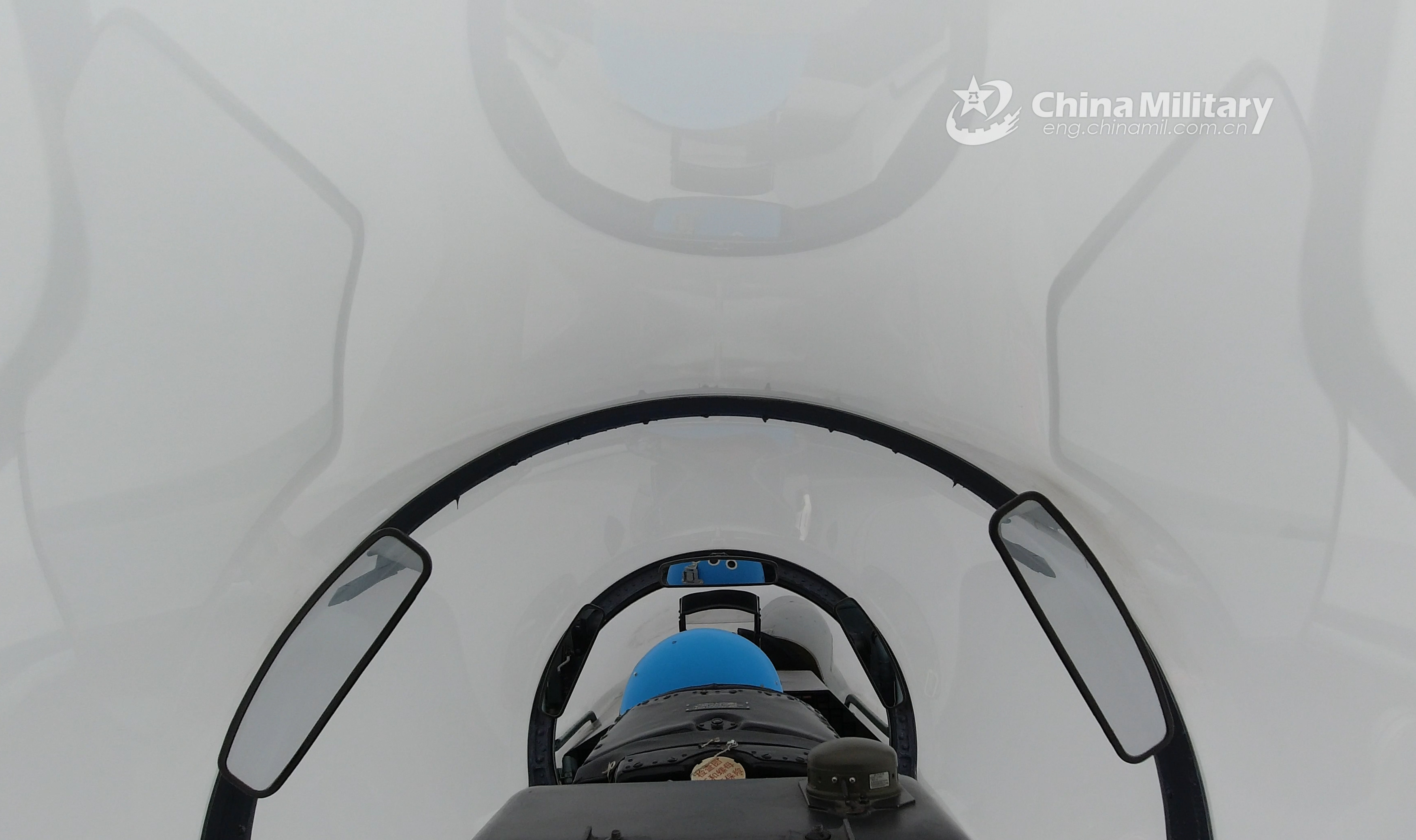 A pilot assigned to a naval aviation brigade under the PLA Eastern Theater Command manipulates his fighter during a flight training mission on December 16, 2021. (eng.chinamil.com.cn/Photo by Tian Jianmin)