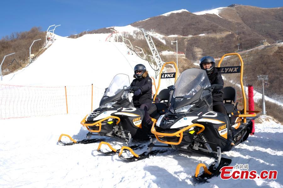 Members of an operation and maintenance team for alpine skiing train at the National Alpine Ski Center, Beijing, capital of China, Dec. 23, 2021. (Photo: China News Service/Han Haidan)
