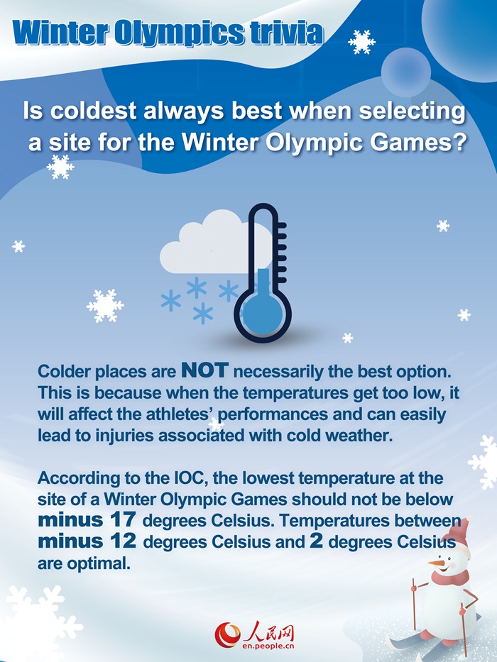 When choosing a site for hosting the Winter Olympic Games, colder places are not necessarily the best option. This is because when the temperatures get too low, it will affect the athletes' performances and can easily lead to injuries associated with cold weather.