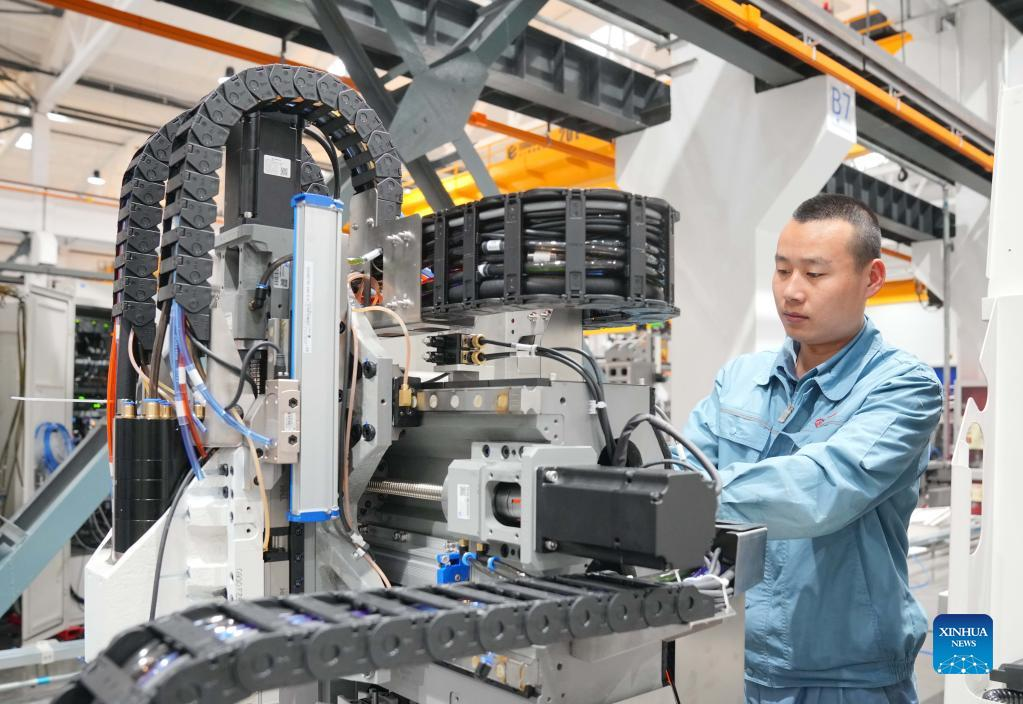 A worker is busy at the workshop of a numerical control machine manufacturing company in the Langfang Economic and Technological Development Zone of Langfang City, north China's Hebei Province, Dec. 25, 2021. The revenue of enterprises above designated size in the zone have reached 41.6 billion yuan (about 6.5 billion U.S. dollars) from January to November this year, a year-on-year increase of 7.92 percent. (Xinhua/Yang Shiyao)