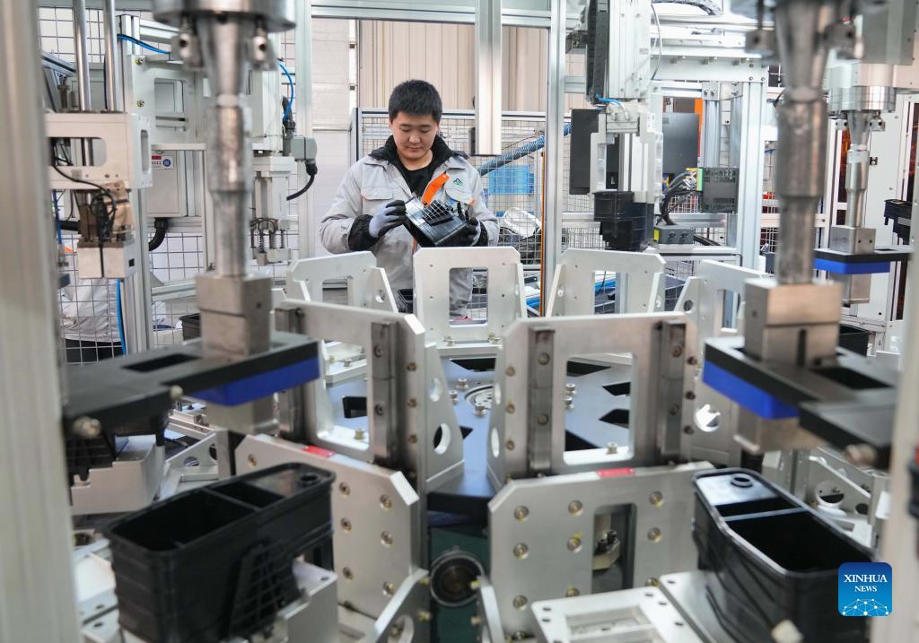 A worker is busy at the workshop of an auto parts manufacturing company in the Langfang Economic and Technological Development Zone of Langfang City, north China's Hebei Province, Dec. 25, 2021. The revenue of enterprises above designated size in the zone have reached 41.6 billion yuan (about 6.5 billion U.S. dollars) from January to November this year, a year-on-year increase of 7.92 percent. (Xinhua/Yang Shiyao)