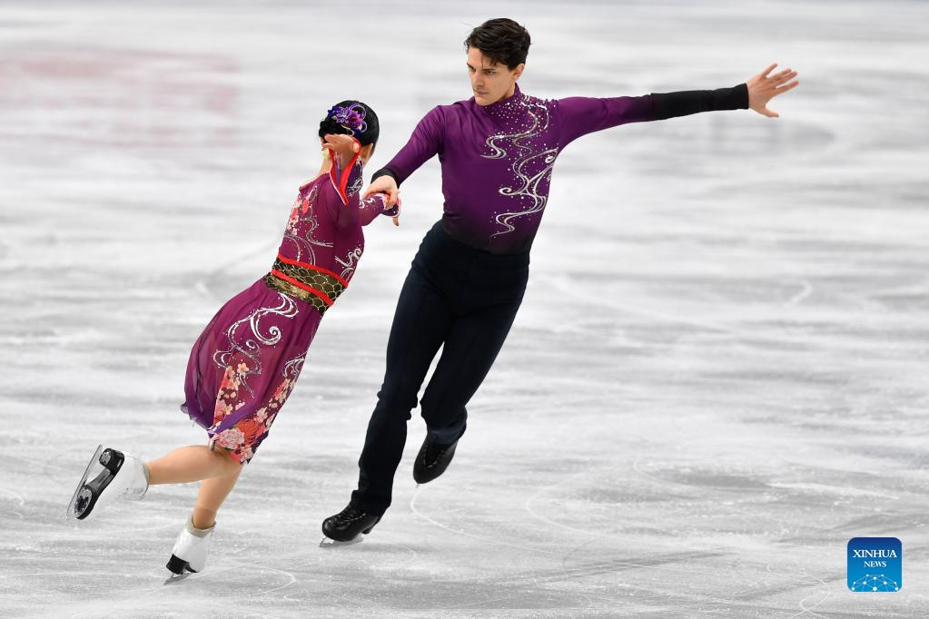 Komatsubara Misato (L) and Komatsubara Takeru compete during the ice dance competition at the All-Japan Figure Skating Championships held in Saitama, Japan, Dec. 25, 2021. (Xinhua/Zhang Xiaoyu)