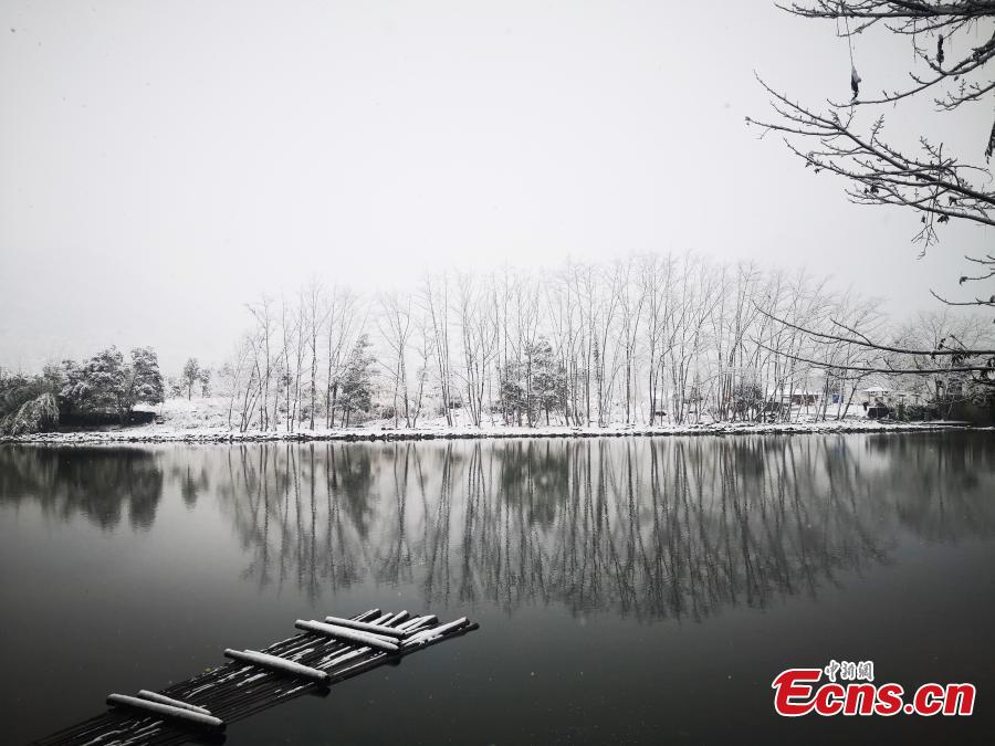 Snow-capped Shadong village looks picturesque at the foot of Fanjing Mountain in the southwest China’s Guizhou Province, Dec. 26, 2021. (China News Service/Li he)