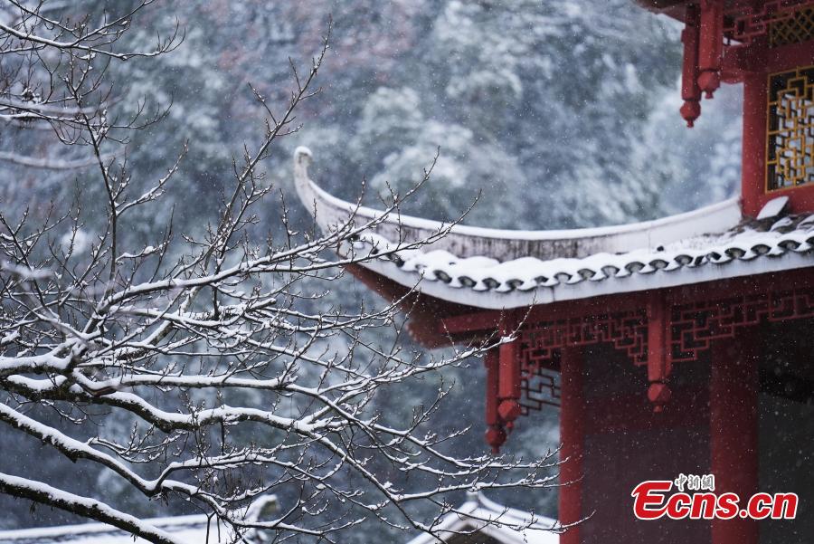 Snow-capped Shadong village looks picturesque at the foot of Fanjing Mountain in the southwest China’s Guizhou Province, Dec. 26, 2021. (China News Service/Li he)