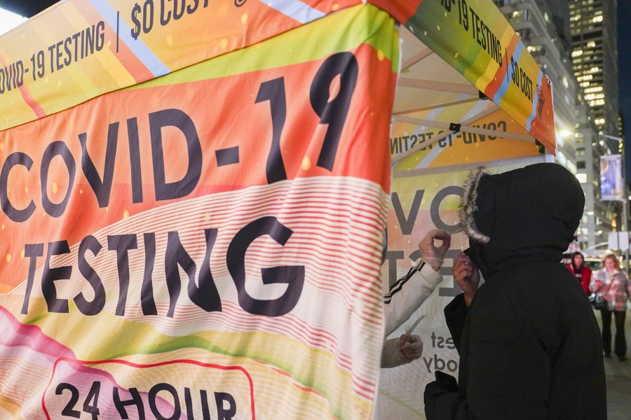 A person receives a COVID-19 test at a testing site in New York, the United States, Dec. 20, 2021. (Xinhua/Wang Ying)