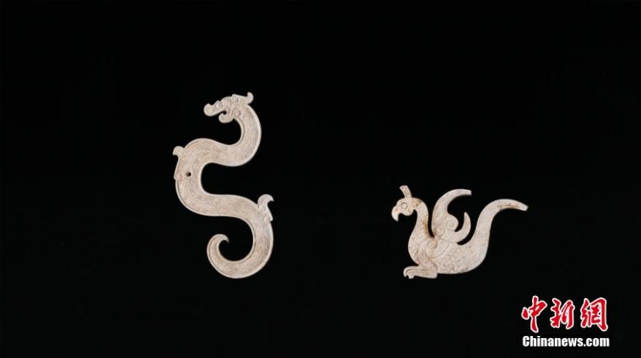 This undated photo shows jade artifacts in the shape of dragon and phoenix unearthed from the Guozishan Tomb in East China's Jiangxi Province. (Photo provided by Jiangxi Provincial Institute of Cultural Relics and Archaeology)