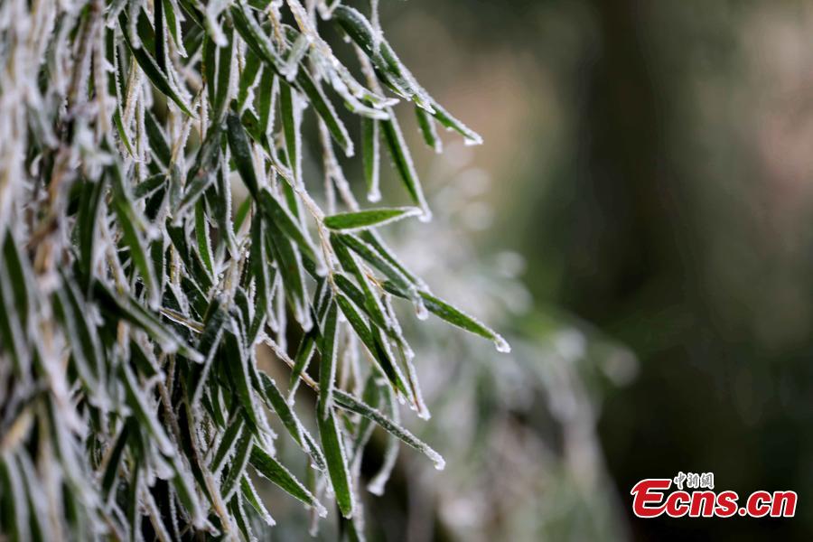 Icicles hang down from plants in a village of Rong'an County, Liuzhou, south China's Guangxi Zhuang Autonomous Region. (China News Service/Tan kaixing)