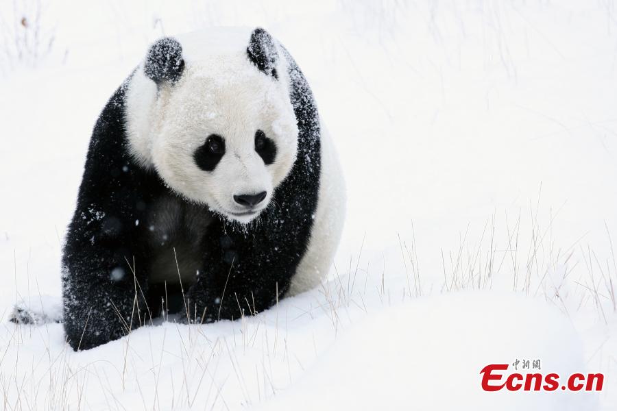 Giant panda Xiao Liwu, or “Little Gift”, enjoy itself outside the panda hall after snow at Jiuzhaigou County of Aba Tibetan and Qiang Autonomous Prefecture in southwest China's Sichuan Province, Dec 26, 2021. (Photo by He Shengshan)