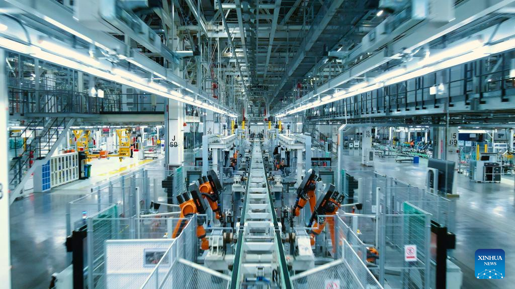Photo taken on Dec. 21, 2021 shows the inside of the new Tiexi Plant of BMW Brilliance Automotive (BBA) in Shenyang, northeast China's Liaoning Province. German luxury carmaker BMW on Dec. 16 announced its upgraded strategy in the Chinese market, with three new or upgraded plants that are in Shenyang and Zhangjiagang to open in 2022. (Xinhua)