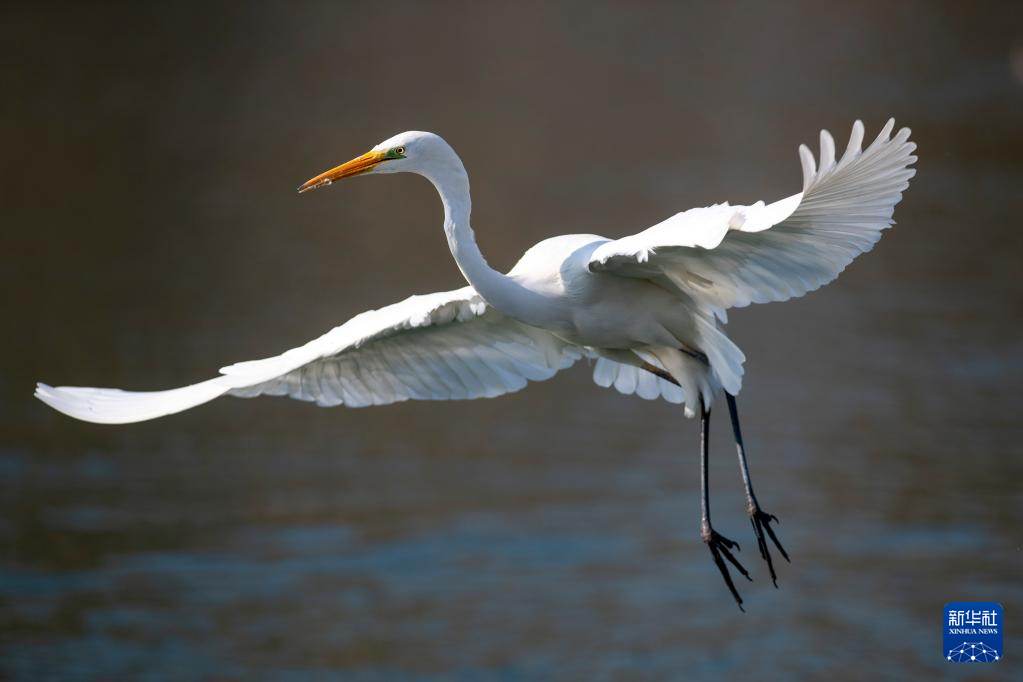 An egret is seen at Fenhe river wetland park in Taiyuan, north China's Shanxi Province, Dec. 28, 2021. (Xinhua/Yang Chenguang)
