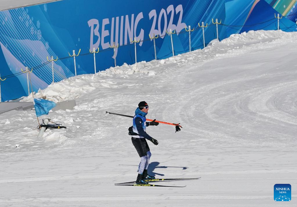 A participant conducts test on the track during the biathlon international training week at the National Biathlon Center in Zhangjiakou competition zone of the Beijing 2022 Olympic and Paralympic Winter Games, in Zhangjiakou, north China's Hebei Province, Dec. 28, 2021. (Xinhua/Mu Yu)