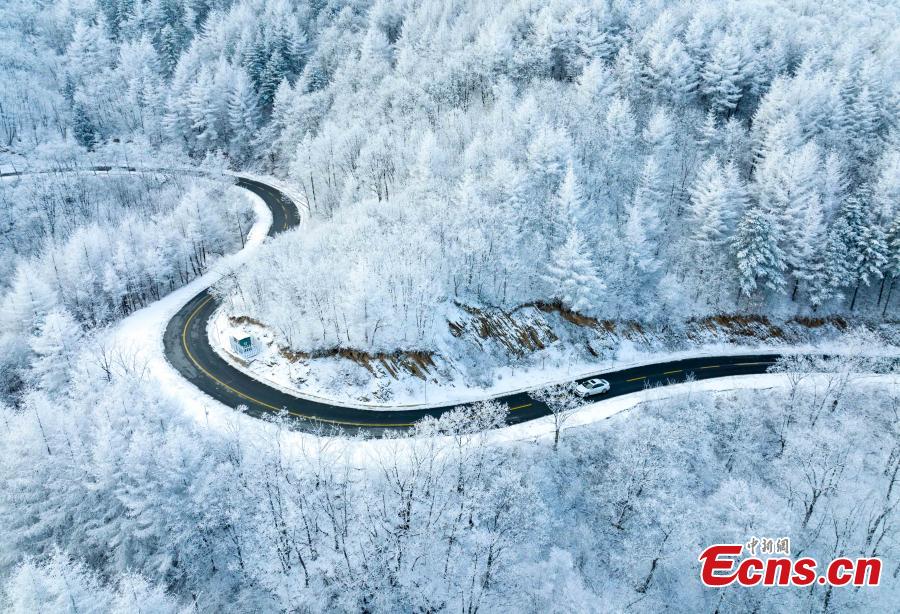 Snow-covered scenic spot in Hubei offers picturesque scenery