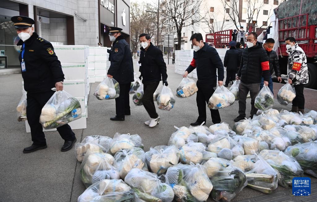 Daily necessities of residents were guaranteed every day through delivery services. (Xinhua/Liu Xiao)