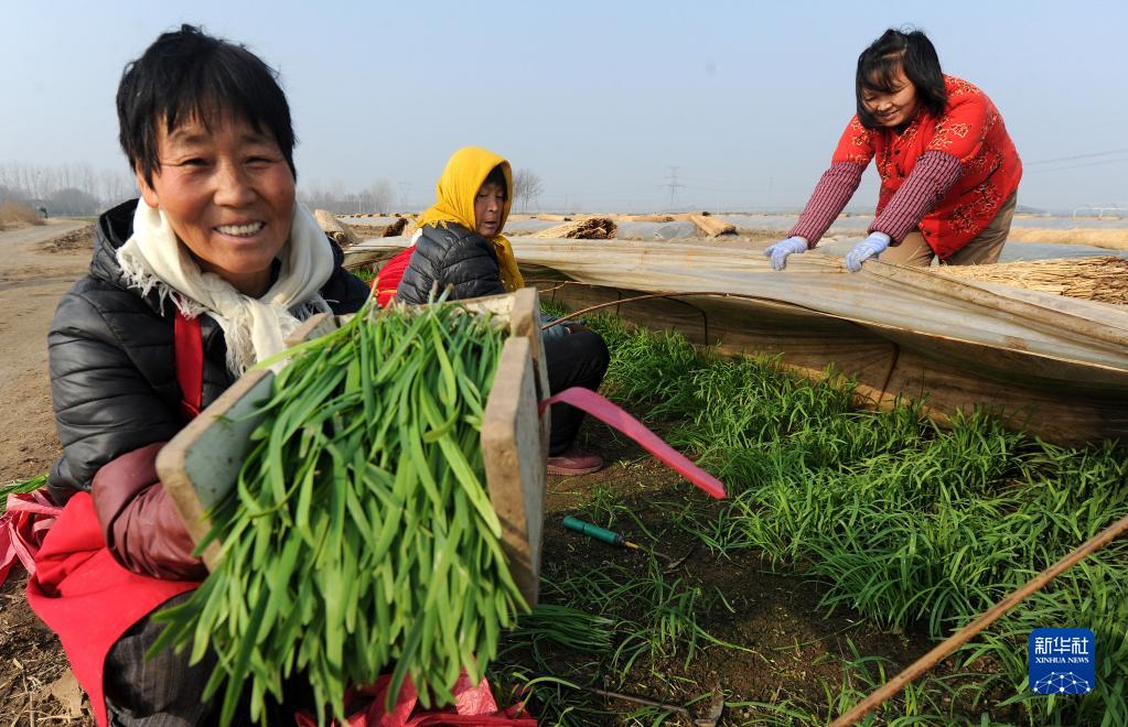 Photo taken on Dec. 29, 2021 shows farmers working in a greenhouse for vegetable seedling cultivation in Nanshang Village, Zhaiwang Township, Yangxin County, east China’s Shandong Province. In recent years, the local government has been helping farmers increase their income by facilitating organic vegetable planting and establishing organic fertilizer production bases. Now the business has been scaled up and industrialized.