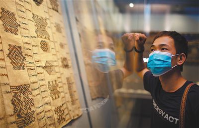Photo shows Huang Yangwei visiting the Hainan Provincial Museum of Ethnology. (Photo/Hainan Daily)