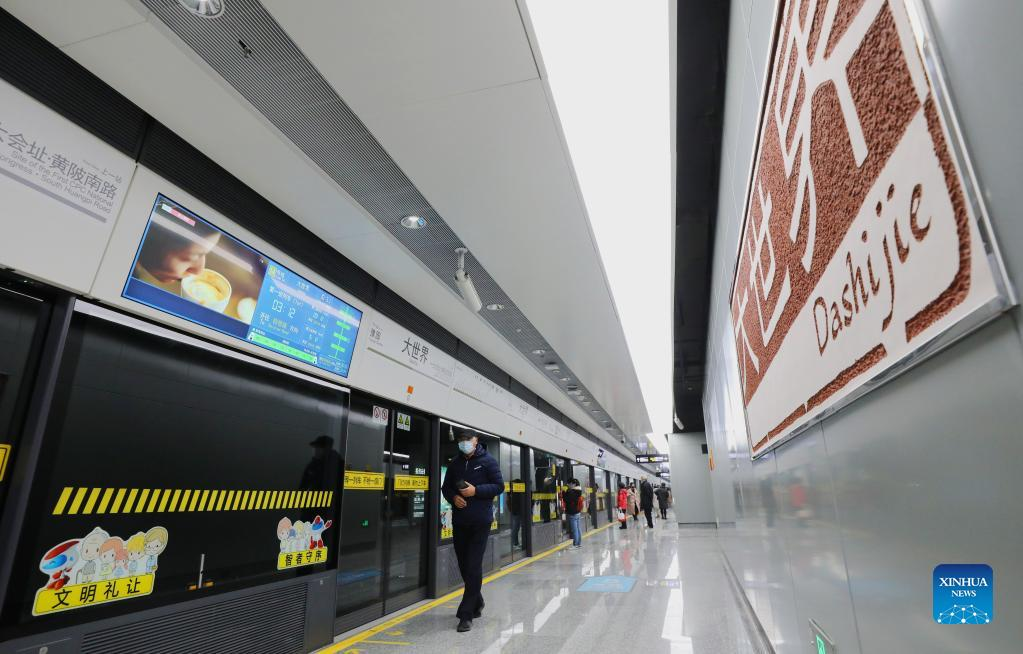 Passengers wait for the train at Dashijie Station on metro Line 14 in east China's Shanghai, Dec. 30, 2021. Two new metro lines went into operation Thursday in Shanghai, which brings the total length of Shanghai's metro network to 831 km, solidifying its world-leading status, according to Shanghai Metro. The opening of the two new lines will bring the total number of fully automatic metro lines in Shanghai to five, with an operating length of 167 km, ranking first in the world for the first time, Shanghai Metro added. (Xinhua/Fang Zhe)