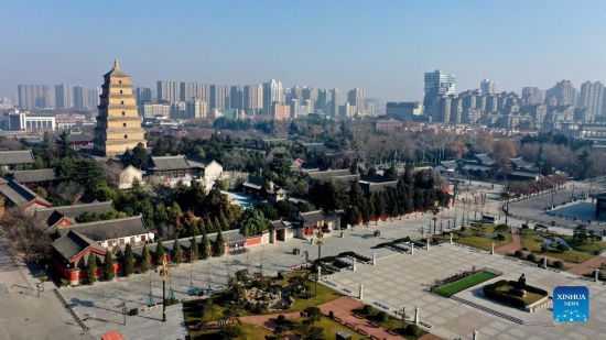 Aerial photo taken on Jan. 1, 2022 shows the city view of Xi'an, northwest China's Shaanxi Province. Xi'an, a northwestern Chinese city hit by a recent COVID-19 resurgence, has been making all-out efforts to ensure sufficient food and medicine supplies for its 13 million people who have been under lockdown for over a week. (Xinhua/Tao Ming)