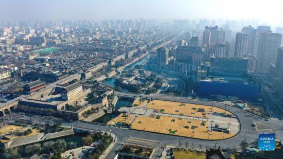 Aerial photo taken on Jan. 1, 2022 shows the city view of Xi'an, northwest China's Shaanxi Province. Xi'an, a northwestern Chinese city hit by a recent COVID-19 resurgence, has been making all-out efforts to ensure sufficient food and medicine supplies for its 13 million people who have been under lockdown for over a week. (Xinhua/Tao Ming)