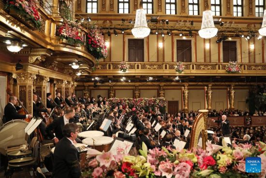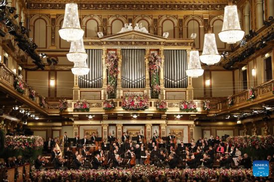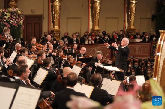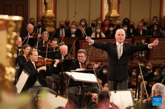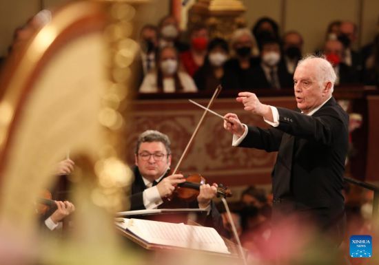 The Vienna Philharmonic Orchestra under the baton of conductor Daniel Barenboim perform during the 2022 Vienna Philharmonic New Year's Concert in Vienna, Austria, Jan. 1, 2022. (Dieter Nagl/The Vienna Philharmonic Orchestra/Handout via Xinhua)