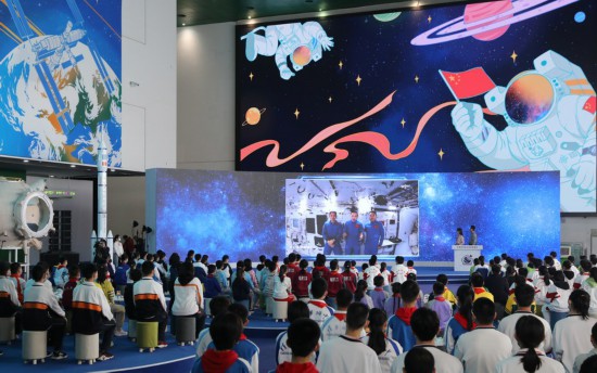 Students attend a live class given by the Shenzhou-13 crew members at the China Science and Technology Museum in Beijing, capital of China, Dec. 9, 2021. The first live class from China's space station was given on Dec. 9 noon by Shenzhou-13 crew members Zhai Zhigang, Wang Yaping and Ye Guangfu to students on Earth. (Xinhua/Jin Liwang)