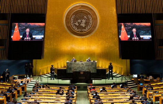 Chinese President Xi Jinping addresses the general debate of the 76th session of the United Nations General Assembly via video on Sept. 21, 2021. (Xinhua/Wang Ying)