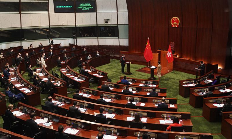 The oath-taking ceremony for members of the seventh-term Legislative Council (LegCo) of China's Hong Kong Special Administrative Region (HKSAR) is held at the LegCo Complex in Hong Kong, south China, Jan. 1, 2022.Photo:Xinhua