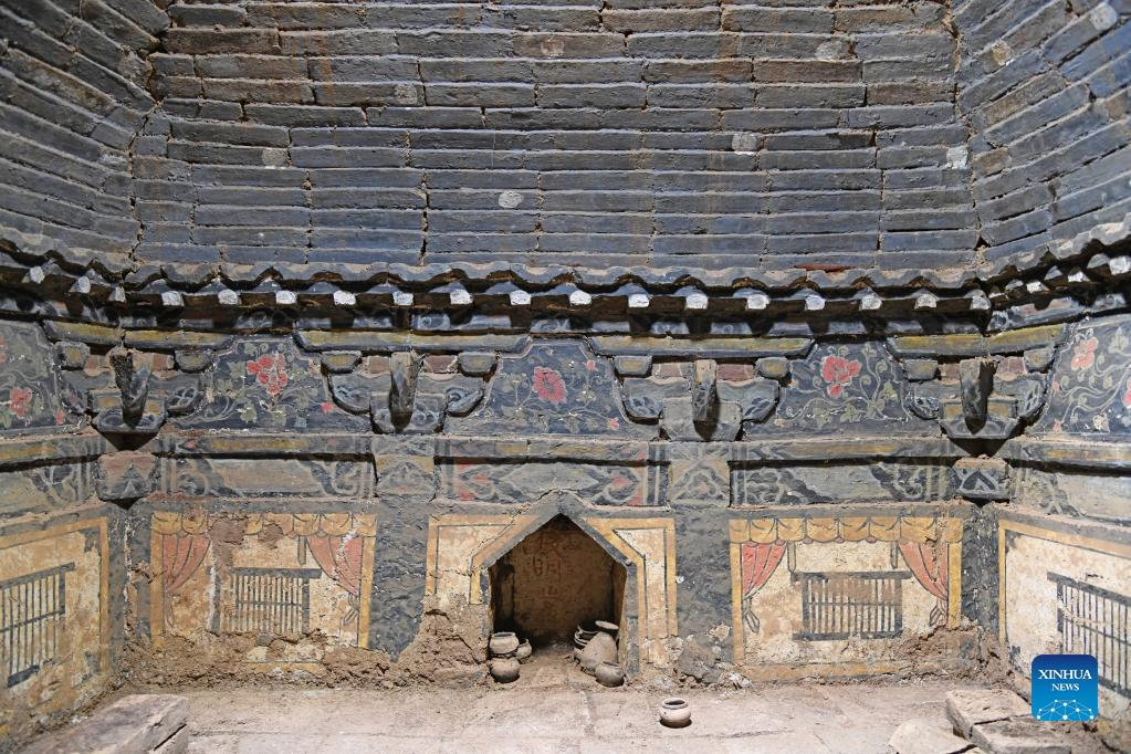 Undated photo provided by the Shanxi provincial institute of archaeology shows murals in a tomb chamber in Luzhou District of Changzhi City, north China's Shanxi Province. (Xinhua)