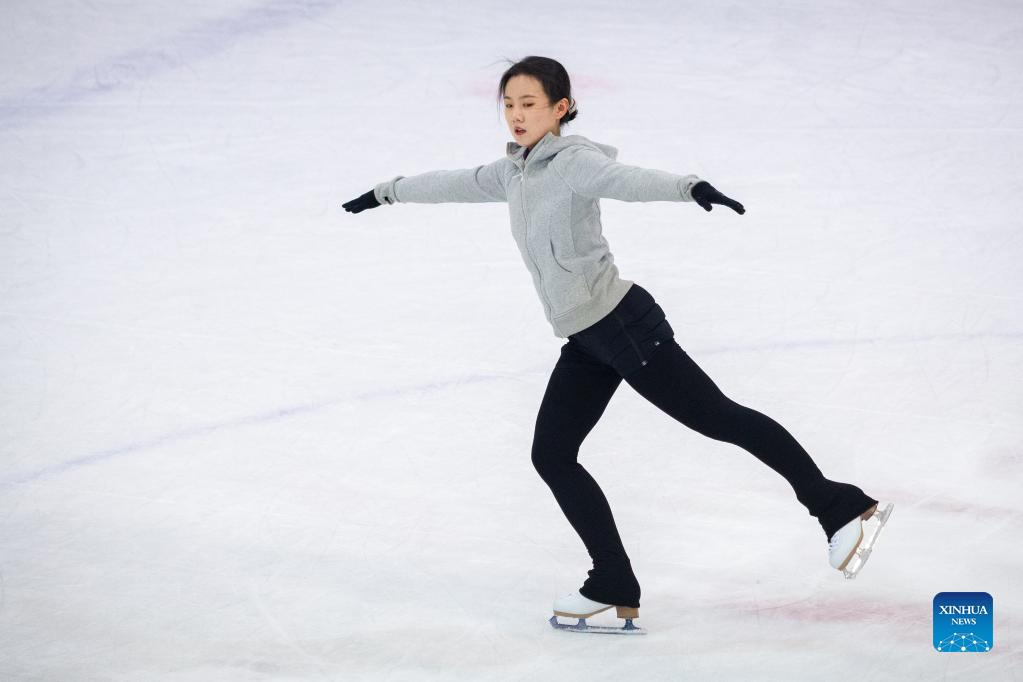 A woman enjoys skating at the Olympic Sports Center of Nanjing, east China's Jiangsu Province, Jan. 2, 2022. (Photo by Su Yang/Xinhua)