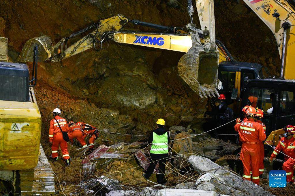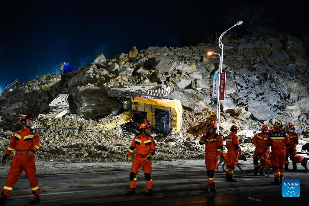 Rescuers work at the site of a landslide in Bijie, southwest China's Guizhou Province, Jan. 4, 2022.(Xinhua/Yang Wenbin)