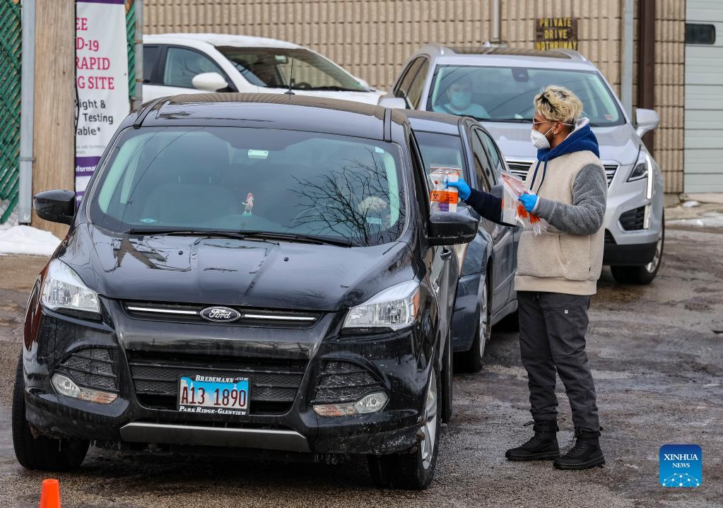 A medical worker collects a COVID-19 test sample at a pop-up COVID-19 testing site in Evanston, Illinois, the United States, on Jan. 4, 2022. More than 103,000 people are currently hospitalized with COVID-19 in the United States, the first time the total has reached six figures in nearly four months, CNN on Tuesday quoted the latest data from the U.S. Department of Health and Human Services as saying. (Photo by Joel Lerner/Xinhua)