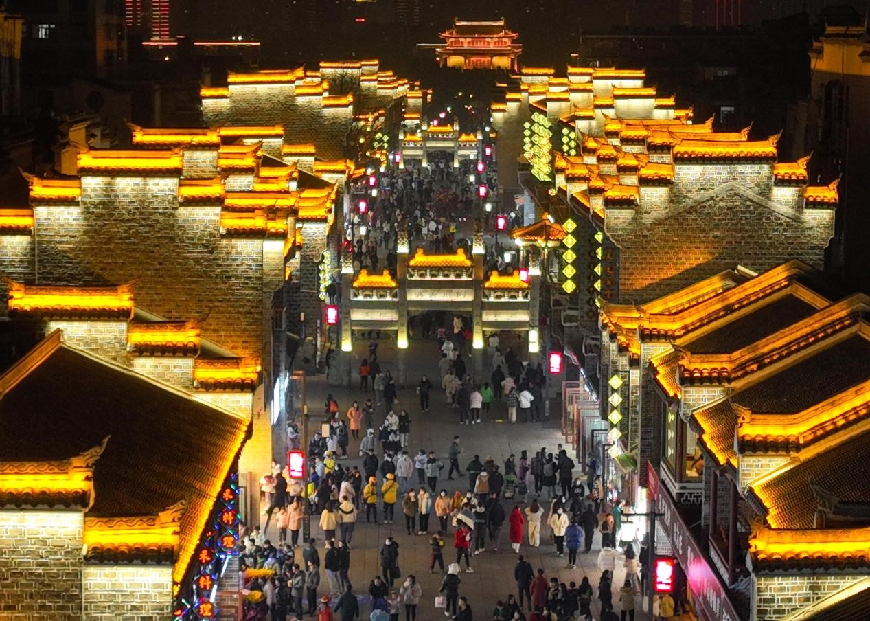 Photo shows a night view of the Xiangyang ancient town, central China’s Hubei province, Jan. 2, 2022. (People’s Daily Online/ Yang Dong)