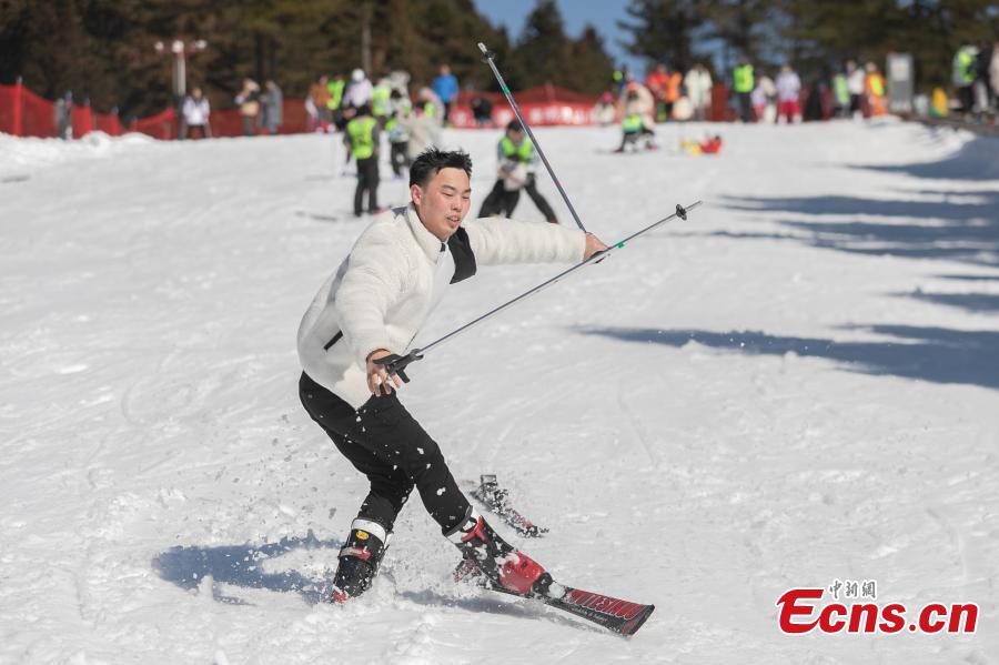 A tourist skis at a snow park in Yichun, east China's Jiangxi Province, Jan. 4, 2022. (Photo: China News Service/Liu Lixin)