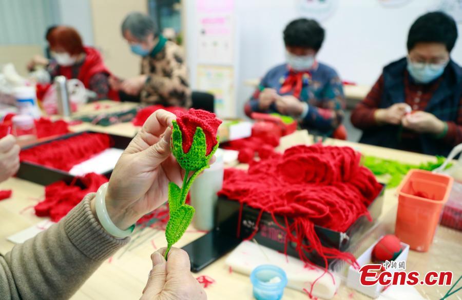 Shanghai aunties make woolen bouquets for Winter Olympics (3)